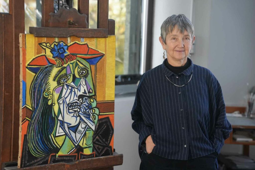 《格爾尼卡》是重要的反戰作品,《哭泣的女人》則是畢卡索最偉大作品之一。那讓人震撼的色彩與破碎的臉孔,被分割成幾何碎片的臉龐,從來沒有畫家用這樣的方式表達過悲痛。當時法西斯主義遍布歐洲,西班牙內戰一觸即發,朵拉說,畫中主角的哭泣是為世界的悲劇而哭;畢卡索說,所有的畫作都不是裝飾,「對抗」才是目的。內戰後,61歲的畢卡索與朵拉漸行漸遠,這時,畢卡索遇見了21歲的芳絲華·吉洛特(Françoise Gilot)。