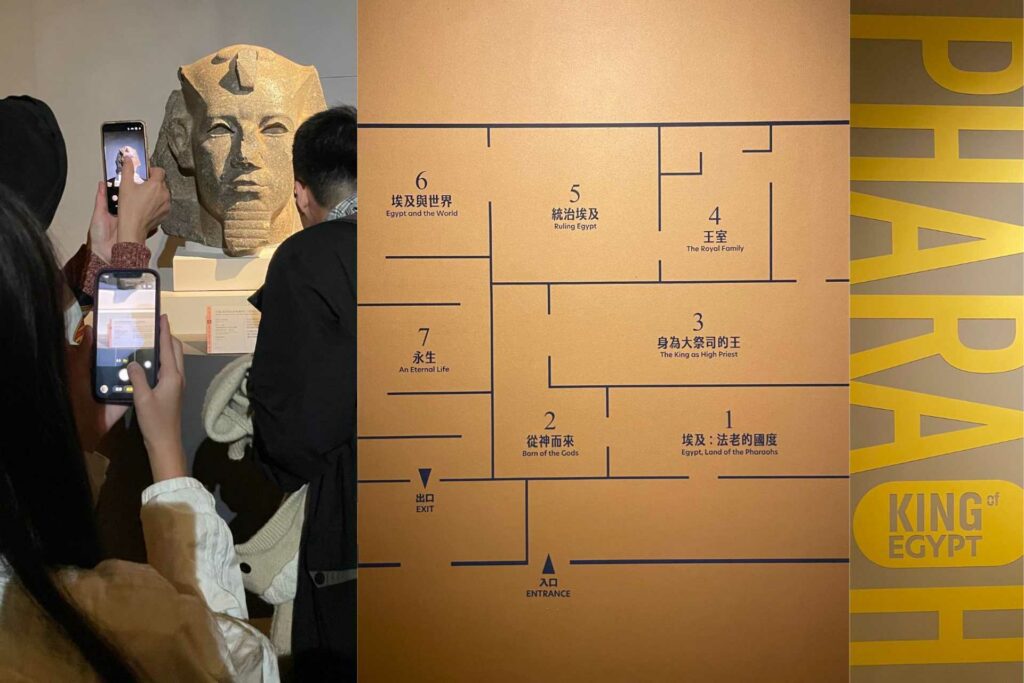 在開場展廳〈埃及:法老的國度〉,展覽先建立觀眾對埃及地理及王權制度的基本認識:進入〈從神而來〉、〈身為大祭司的王〉展廳,說明古埃及信仰的影響力,創造出一個要角(法老)讓觀眾得以追隨,進入展廳內訴說的故事。