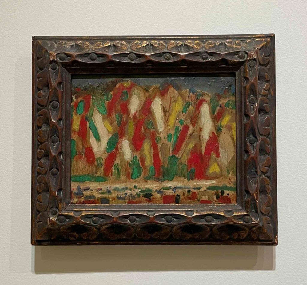 當觀眾轉進「統合超越」展區時,可以看見廖繼春標誌性的繪畫風格,已在 1960 年代後成形。有表現性強烈的筆觸、情感豐富的色彩,藝術家完全跳脫抽象或具象、有形或無形,找到自己的表現方式。這也是畫作數量最多的展區,展場無須太複雜的設計點綴,就能營造嘉年華般的看展體驗。